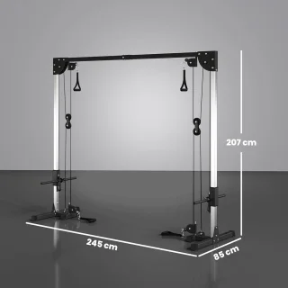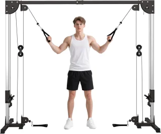 Wil je thuis effectief en veelzijdig trainen zonder meerdere apparaten? Dit multifunctionele krachtstation met dubbele kabels biedt een volledige workoutoplossing voor armen, schouders, borst, rug en core — allemaal in één stabiel apparaat. Dankzij het slimme schroefriemsysteem en vier verschillende handvatopties wissel je moeiteloos tussen oefeningen zoals zijwaartse trekken, biceps curls, kickbacks en roeibewegingen.
